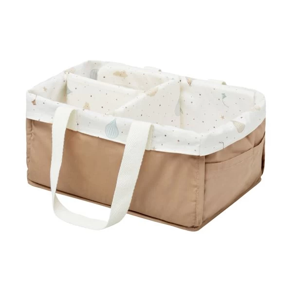 Deze Cam Cam Copenhagen Dreamland Commodemandje is ideaal wanneer je je kindje moet verschonen! Je kunt het mandje op de commode neerzetten, zodat je alle benodigdheden voor de verzorging van je kindje bij de hand hebt. Denk bijvoorbeeld aan een kam, borstel, manicureset en andere verzorgingsproducten, zo kan je de aandacht goed bij je kindje houden tijdens het badderen of verzorgen. Dankzij het handvat kan je de mand overal mee naar toe nemen en door de handige vakjes kan je alles georganiseerd opbergen. Verder is de mand gemaakt van hoogwaardig materiaal.